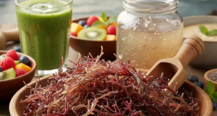 Il muschio marino è un’alga rossa ricca di iodio, minerali e fibre prebiotiche. Tuttavia, è fondamentale consumare prodotti certificati per evitare contaminazioni.